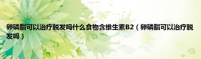 本文,卵磷脂可以治疗脱发吗什么食物含维生素B2,卵磷脂可以治疗脱发吗到此就分享完毕,希望对大家有所帮助。
