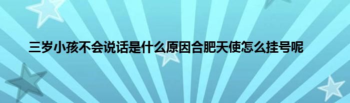 本文,三岁小孩不会说话是什么原因合肥天使怎么挂号呢到此就分享完毕,希望对大家有所帮助。