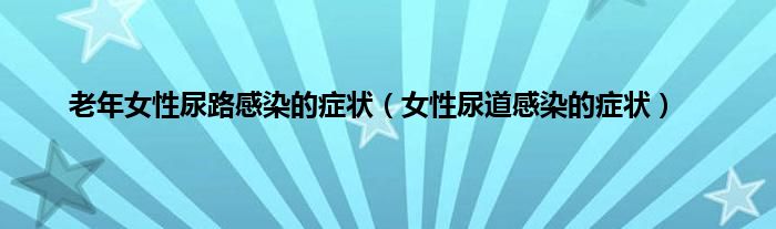 本文,老年女性尿路感染的症状,女性尿道感染的症状到此就分享完毕,希望对大家有所帮助。