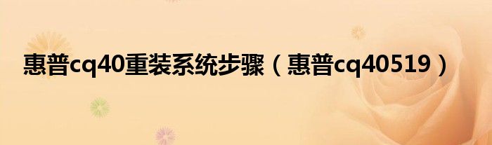 以上就是【惠普cq40重装系统步骤,惠普cq40519】相关内容。