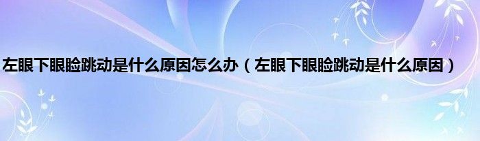 本文,左眼下眼睑跳动是什么原因怎么办,左眼下眼睑跳动是什么原因到此就分享完毕,希望对大家有所帮助。