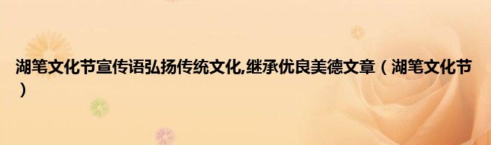 以上就是【湖笔文化节宣传语弘扬传统文化,继承优良美德文章,湖笔文化节】相关内容。