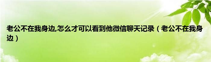 大家好,小问来为大家解答以上问题。老公不在我身边,怎么才可以看到他微信聊天记录,老公不在我身边这个很多人还不知道,现在让我们一起来看看吧!