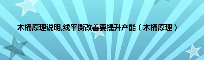 大家好,小问来为大家解答以上问题。木桶原理说明,线平衡改善要提升产能,木桶原理这个很多人还不知道,现在让我们一起来看看吧!