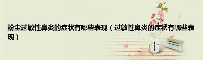本文,粉尘过敏性鼻炎的症状有哪些表现,过敏性鼻炎的症状有哪些表现到此就分享完毕,希望对大家有所帮助。