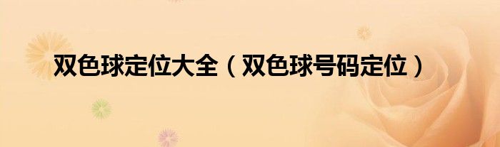以上就是【双色球定位大全,双色球号码定位】相关内容。