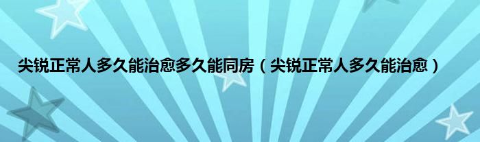 大家好,尖锐正常人多久能治愈多久能同房,尖锐正常人多久能治愈很多人还不知道,现在让我们一起来看看吧!