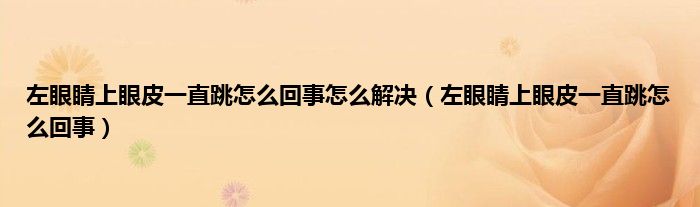 本文,左眼睛上眼皮一直跳怎么回事怎么解决,左眼睛上眼皮一直跳怎么回事到此就分享完毕,希望对大家有所帮助。