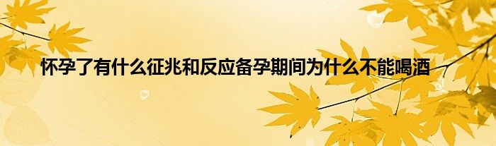 大家好,怀孕了有什么征兆和反应备孕期间为什么不能喝酒很多人还不知道,现在让我们一起来看看吧!