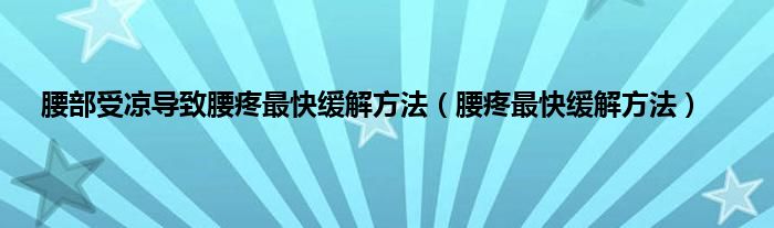 本文,腰部受凉导致腰疼最快缓解方法,腰疼最快缓解方法到此就分享完毕,希望对大家有所帮助。
