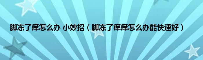本文,脚冻了痒怎么办 小妙招,脚冻了痒痒怎么办能快速好到此就分享完毕,希望对大家有所帮助。