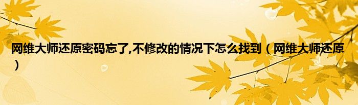 以上就是【网维大师还原密码忘了,不修改的情况下怎么找到,网维大师还原】相关内容。