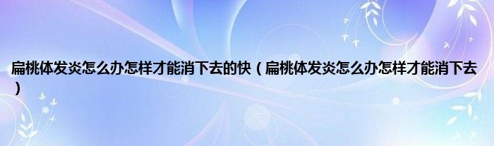 本文,扁桃体发炎怎么办怎样才能消下去的快,扁桃体发炎怎么办怎样才能消下去到此就分享完毕,希望对大家有所帮助。