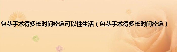 本文,包茎手术得多长时间痊愈可以性生活,包茎手术得多长时间痊愈到此就分享完毕,希望对大家有所帮助。