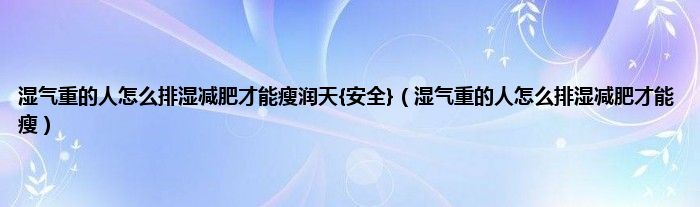 本文,湿气重的人怎么排湿减肥才能瘦润天{安全},湿气重的人怎么排湿减肥才能瘦到此就分享完毕,希望对大家有所帮助。