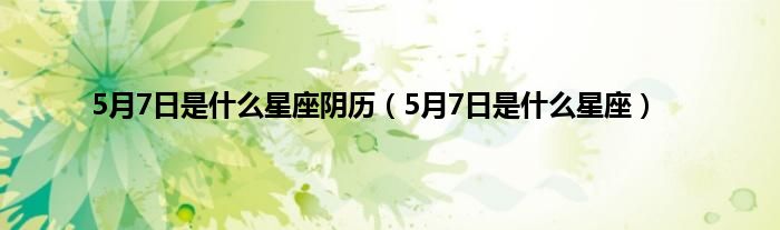 以上就是【5月7日是什么星座阴历,5月7日是什么星座】相关内容。