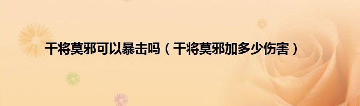 以上就是【干将莫邪可以暴击吗,干将莫邪加多少伤害】相关内容。