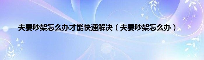 以上就是【夫妻吵架怎么办才能快速解决,夫妻吵架怎么办】相关内容。
