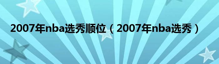 大家好,小问来为大家解答以上问题。2007年nba选秀顺位,2007年nba选秀这个很多人还不知道,现在让我们一起来看看吧!
