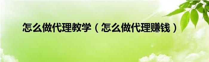 大家好,小问来为大家解答以上问题。怎么做代理教学,怎么做代理赚钱这个很多人还不知道,现在让我们一起来看看吧!