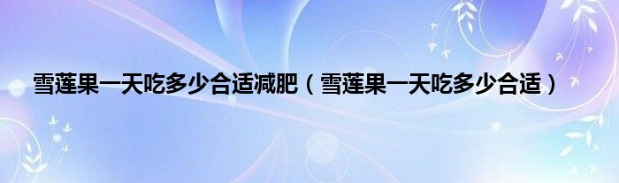 以上就是【雪莲果一天吃多少合适减肥,雪莲果一天吃多少合适】相关内容。