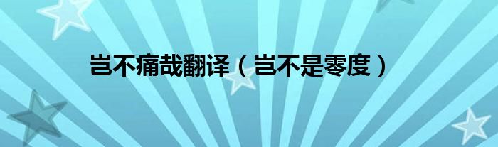大家好,小问来为大家解答以上问题。岂不痛哉翻译,岂不是零度这个很多人还不知道,现在让我们一起来看看吧!