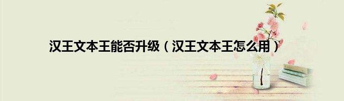 以上就是【汉王文本王能否升级,汉王文本王怎么用】相关内容。
