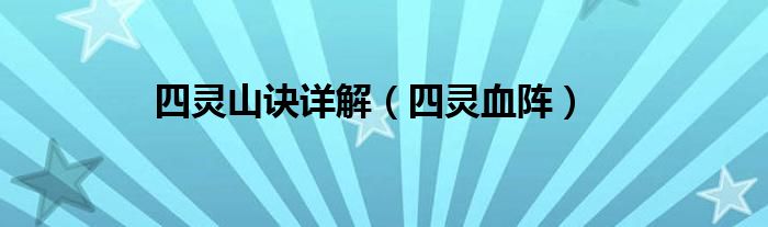 以上就是【四灵山诀详解,四灵血阵】相关内容。