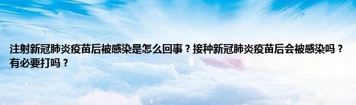 大家好,注射新冠肺炎疫苗后被感染是怎么回事?接种新冠肺炎疫苗后会被感染吗?有必要打吗?很多人还不知道,现在让我们一起来看看吧!