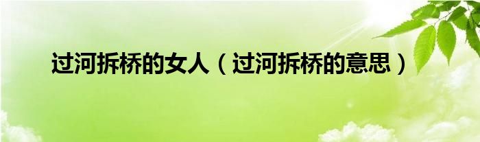 大家好,过河拆桥的女人,过河拆桥的意思很多人还不知道,现在让我们一起来看看吧!