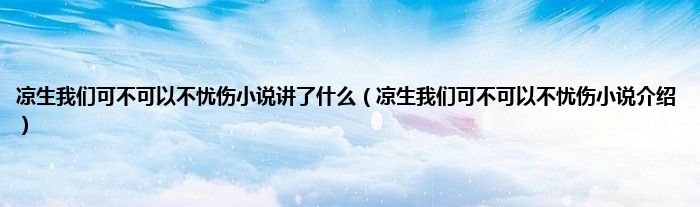 大家好,凉生我们可不可以不忧伤小说讲了什么,凉生我们可不可以不忧伤小说介绍很多人还不知道,现在让我们一起来看看吧!