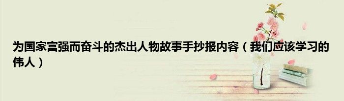 本文,为国家富强而奋斗的杰出人物故事手抄报内容,我们应该学习的伟人到此就分享完毕,希望对大家有所帮助。