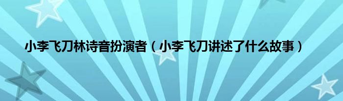 大家好,小李飞刀林诗音扮演者,小李飞刀讲述了什么故事很多人还不知道,现在让我们一起来看看吧!