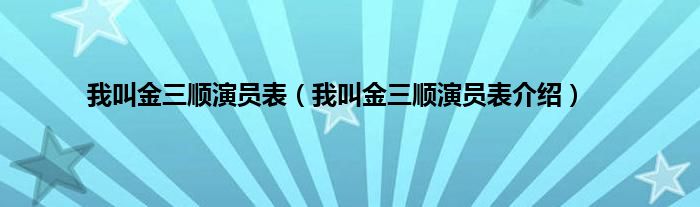 本文,我叫金三顺演员表,我叫金三顺演员表介绍到此就分享完毕,希望对大家有所帮助。