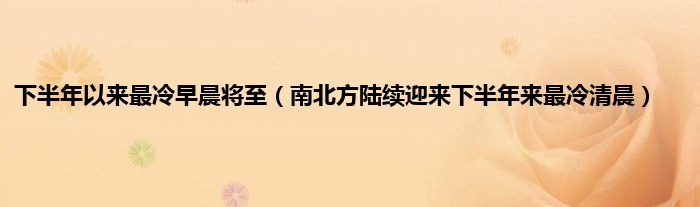 大家好,下半年以来最冷早晨将至,南北方陆续迎来下半年来最冷清晨很多人还不知道,现在让我们一起来看看吧!