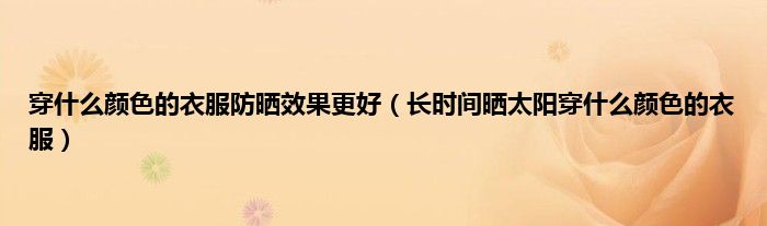 本文,穿什么颜色的衣服防晒效果更好,长时间晒太阳穿什么颜色的衣服到此就分享完毕,希望对大家有所帮助。