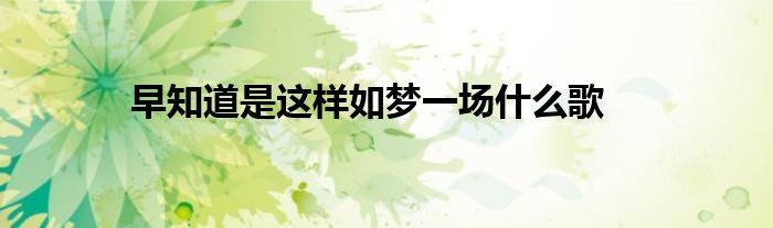 早知道是这样像梦一场