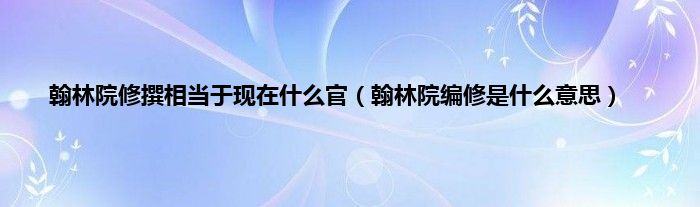 大家好,翰林院修撰相当于现在什么官,翰林院编修是什么意思很多人还不知道,现在让我们一起来看看吧!