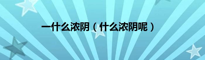 大家好,一什么浓阴,什么浓阴呢很多人还不知道,现在让我们一起来看看吧!