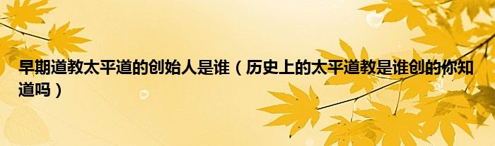 大家好,早期道教太平道的创始人是谁,历史上的太平道教是谁创的你知道吗很多人还不知道,现在让我们一起来看看吧!