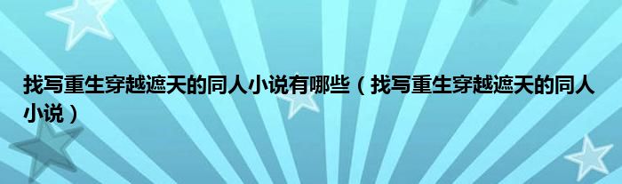 大家好,找写重生穿越遮天的同人小说有哪些,找写重生穿越遮天的同人小说很多人还不知道,现在让我们一起来看看吧!