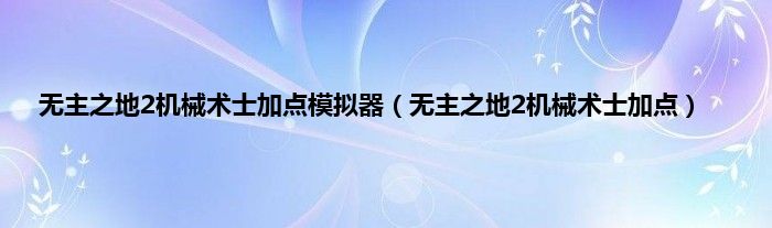 本文,无主之地2机械术士加点模拟器,无主之地2机械术士加点到此就分享完毕,希望对大家有所帮助。