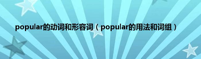 本文,popular的动词和形容词,popular的用法和词组到此就分享完毕,希望对大家有所帮助。