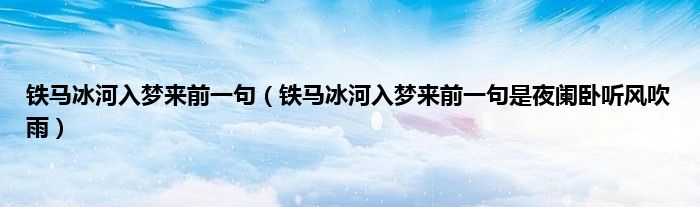 本文,铁马冰河入梦来前一句,铁马冰河入梦来前一句是夜阑卧听风吹雨到此就分享完毕,希望对大家有所帮助。