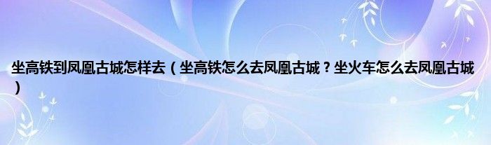 本文,坐高铁到凤凰古城怎样去,坐高铁怎么去凤凰古城?坐火车怎么去凤凰古城到此就分享完毕,希望对大家有所帮助。