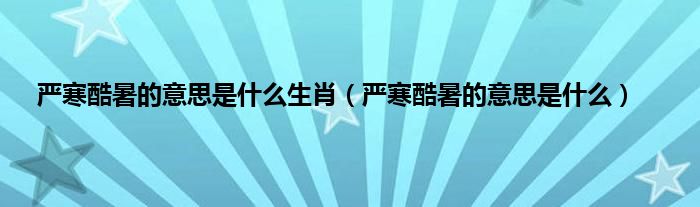 本文,严寒酷暑的意思是什么生肖,严寒酷暑的意思是什么到此就分享完毕,希望对大家有所帮助。