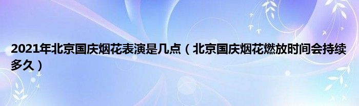 大家好,2021年北京国庆烟花表演是几点,北京国庆烟花燃放时间会持续多久很多人还不知道,现在让我们一起来看看吧!
