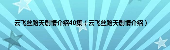 本文,云飞丝路天剧情介绍40集,云飞丝路天剧情介绍到此就分享完毕,希望对大家有所帮助。
