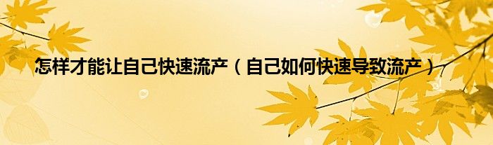 大家好,小问来为大家解答以上问题。怎样才能让自己快速流产,自己如何快速导致流产这个很多人还不知道,现在让我们一起来看看吧!