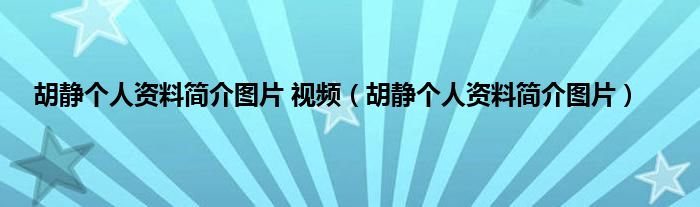 本文,胡静个人资料简介图片 视频,胡静个人资料简介图片到此就分享完毕,希望对大家有所帮助。